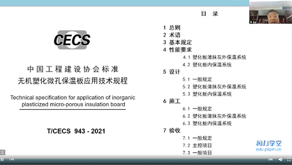 25日上午,中國(guó)工程建設(shè)標(biāo)準(zhǔn)化協(xié)會(huì)(簡(jiǎn)稱:CECS)標(biāo)準(zhǔn)《無(wú)機(jī)塑化微孔保溫板應(yīng)用技術(shù)規(guī)程》宣貫會(huì)以線上會(huì)議的形式成功舉辦。